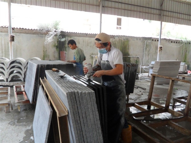 7、檢驗(yàn)修補(bǔ)。天然花崗巖難免有裂縫、孔洞等瑕疵,而且在加工過程也難免會有一些磕碰,出現(xiàn)一些小缺陷。所以在加工完成后所有的花崗巖板材都需要檢驗(yàn),首先要通過清洗,然后是吹干檢驗(yàn),合格品包裝入庫,而不合格產(chǎn)品則應(yīng)先挑出來。在符合定單要求的情況下,對于一些缺陷不嚴(yán)重花崗巖制品可以進(jìn)行修補(bǔ),即進(jìn)行粘接、修補(bǔ),從而減少廢品率。