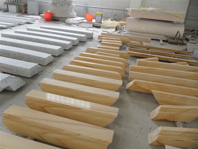 2.石材線條加工流程為:材料統(tǒng)籌-荒料選料-坯料分切-坯料擺板、調(diào)色-造型(成型)-打磨、拋光(必要時(shí)還需要切角、修長)-試拼、調(diào)色-編號-檢驗(yàn)-包裝-運(yùn)輸-安裝等;