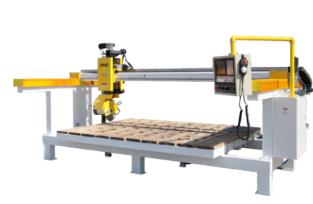 現(xiàn)有技術(shù)中的石材切割機(jī),一般都是用來進(jìn)行直線切割,具有機(jī)體、刀具和帶有調(diào)整支架的托板,當(dāng)石材切割時,靠托板一端的調(diào)整支架調(diào)節(jié)石材與刀具的切割深度。直線切割時由于沒有導(dǎo)軌,都是靠人為掌握切割時的移動軌跡,隨意性強(qiáng)不能保證切割質(zhì)量?,F(xiàn)有的石材切割機(jī)都不能切割圓弧和曲線,由于刀具的強(qiáng)度和結(jié)構(gòu)的局限,使用者都是采用逐塊切角的方法一點(diǎn)點(diǎn)蠶食切割,這樣既浪費(fèi)材料、又耗費(fèi)時間,同時圓弧表面不光滑給拋光帶來很大困難。
